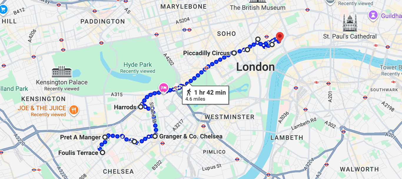 Mostly shopping and exploring around South Kensington > Chelsea > Knightsbridge > Westminster > Covent Garden